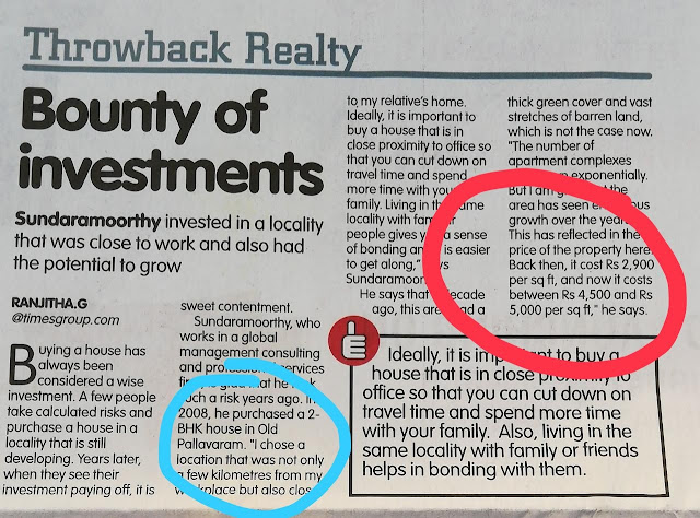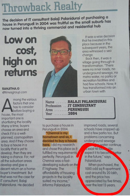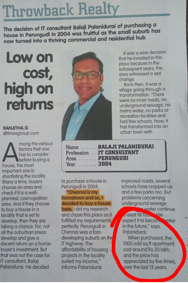 However we said – “Let’s persist!” This week we decided to bring to your notice a couple of newspaper articles that talk about returns from real estate. These articles appeared in Property Times supplement of Times of India