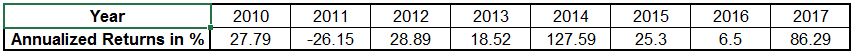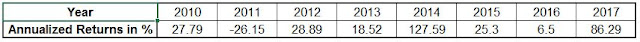 above case, a sum of one lakh rupees invested in the end of 2009 had