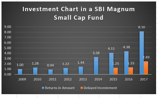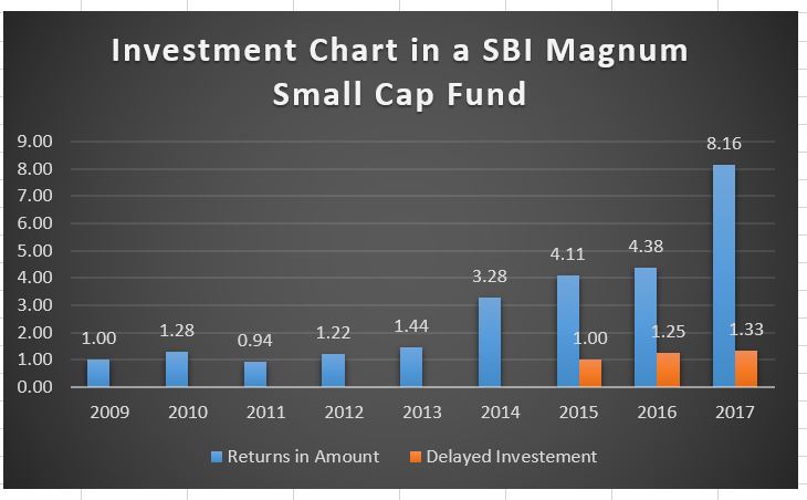 As most of the people, whom we have met have not given a serious thought about investing or are investing very little to see the benefits, are losing out big. We tried our best in educating the power of compounding and starting early. Yet, they find it difficult to understand, so came the idea of writing this blog. Let us look at how delaying the investment will cost you in terms of returns.
