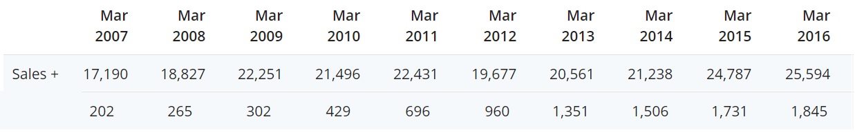 Below is the Sales that these companies have recorded in the last 10 Years.